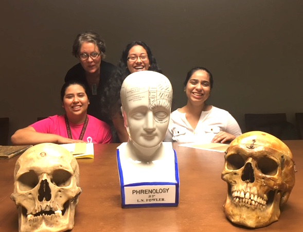 Philip Montgomery and Sandra Yates from the Texas Medical Center joined the Civic Humanist team, setting up an artifact display room in Fondren Library with the help of Rebecca Carleson and Amanda Focke from the Woodson Research Center. Together they collaborated and presented fascinating objects and documents to students, which related to Bracken’s lecture on phrenology.